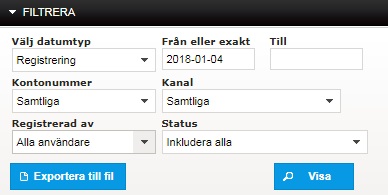 | Från eller exakt | Datum för vald datumtyp. Anges inget ”till” sker sökningen endast på valt datum. |