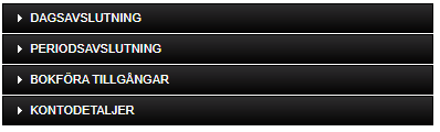 Avstämning kan göras för dag (Dagavslutning), period (Periodavslutning) eller tillgångar (Bokföra Tillgångar).